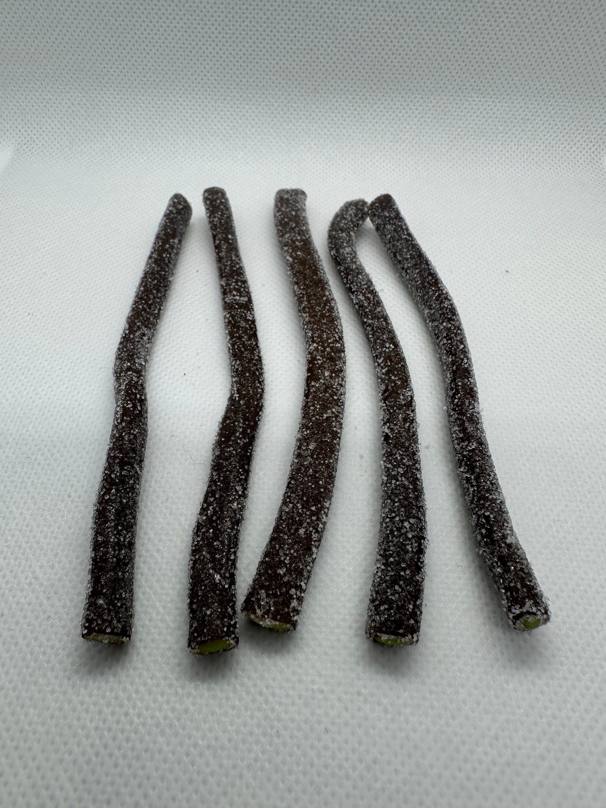 Sucre, sirop de glucose-fructose, farine de blé, eau, acidifiants : acide citrique (E330), acide malique (E296), arômes, colorants : E102, E104, E110, E122, E124, E129, agents d’enrobage : huile végétale (coco), cire de carnauba (E903), conservateur : sorbate de potassium (E202), correcteurs d’acidité : citrate de sodium (E331), émulsifiant : mono- et diglycérides d’acides gras (E471).