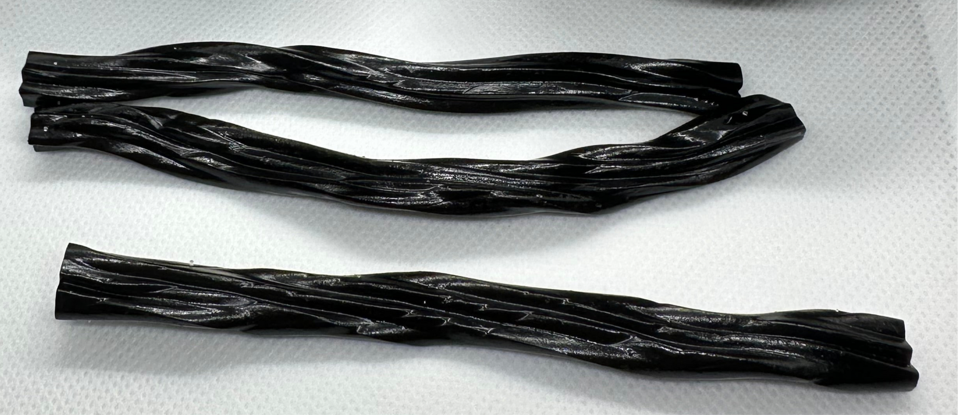 Sirop de glucose-fructose, farine de blé, sucre, sirop de glucose, amidon de blé, arômes, graisse végétale (coco), régulateur d’acidité : acide citrique (E330), émulsifiant : mono- et diglycérides d’acides gras (E471), colorant : E153 (charbon végétal), conservateur : E202, sel.